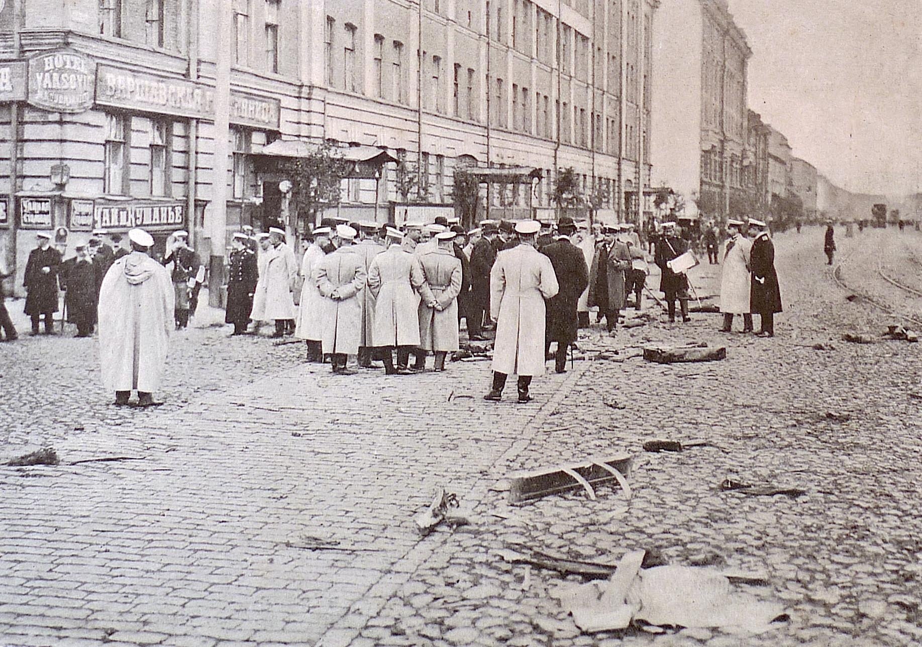 Следственная комиссия с министром юстиции Н.В. Муравьёвым на месте убийства В.К. Плеве