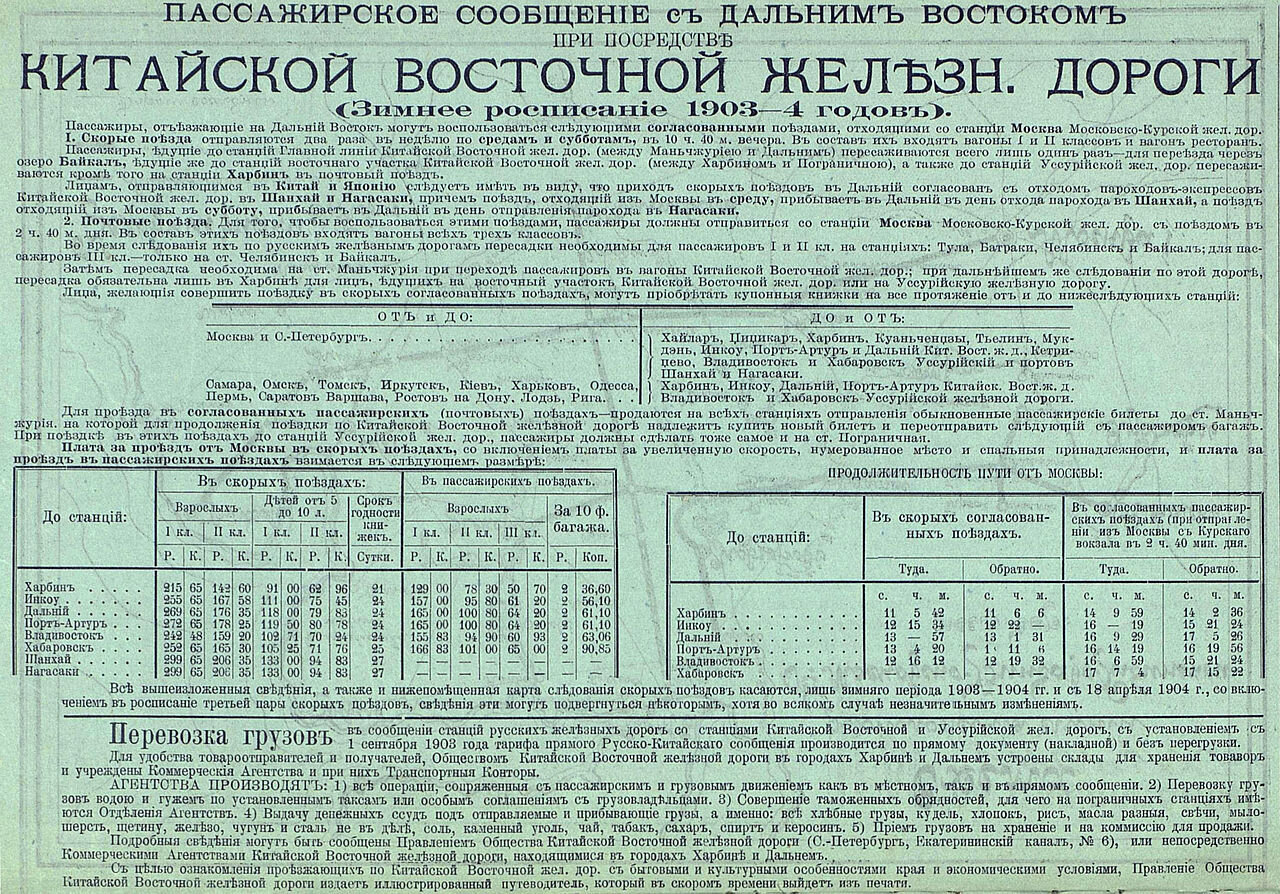 Реклама Китайско-Восточной железной дороги