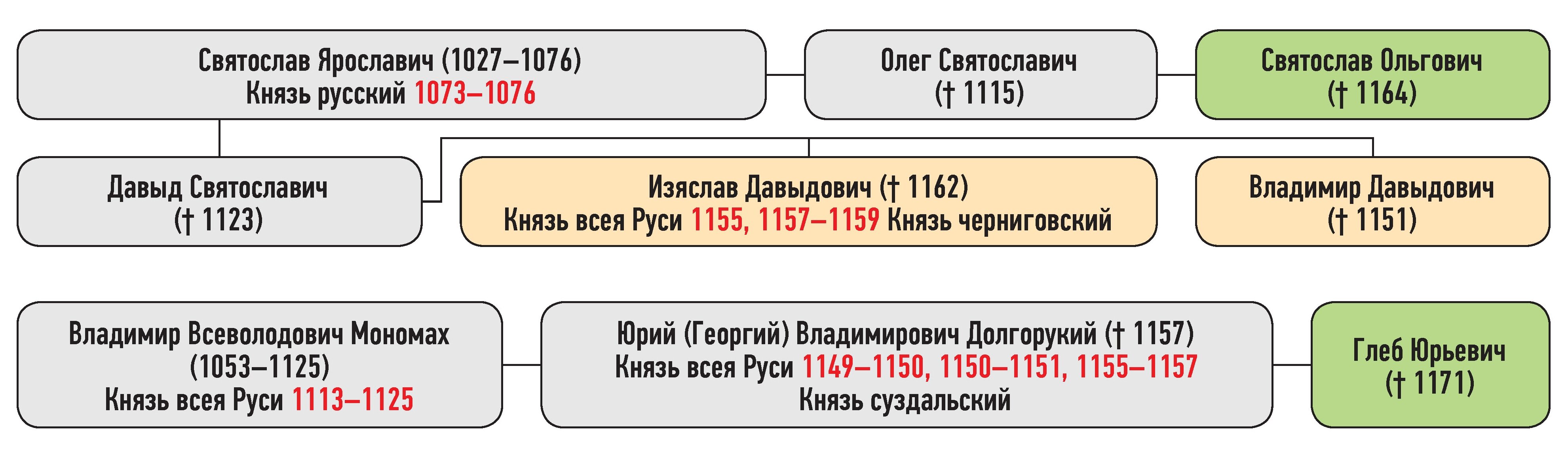 Генеалогическая схема к продолжению усобицы между Святославом Ольговичем и Изяславом Давыдовичем в 1147 г.