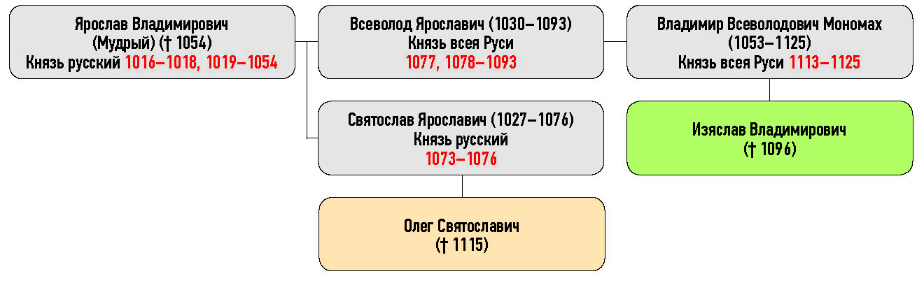 Генеалогическая схема к усобице Олега Святославича и Изяслава Владимировича в 1096 г.
