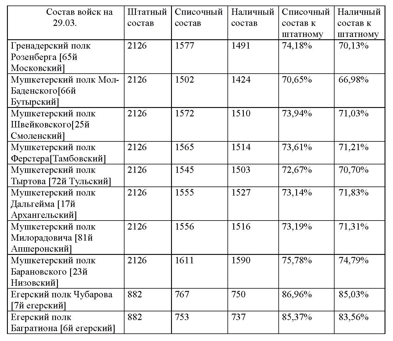 Таблица 12 к статье "База русских полков (1700–1914 гг.). Опыт составления"