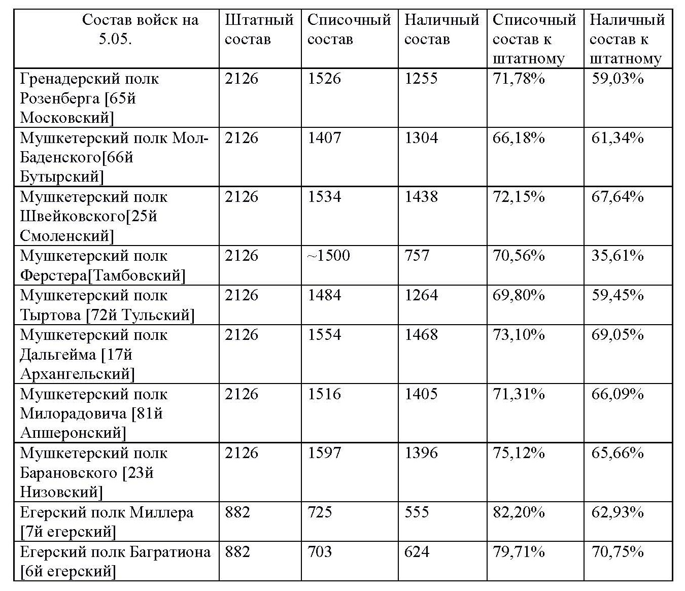 Таблица 13 к статье "База русских полков (1700–1914 гг.). Опыт составления"