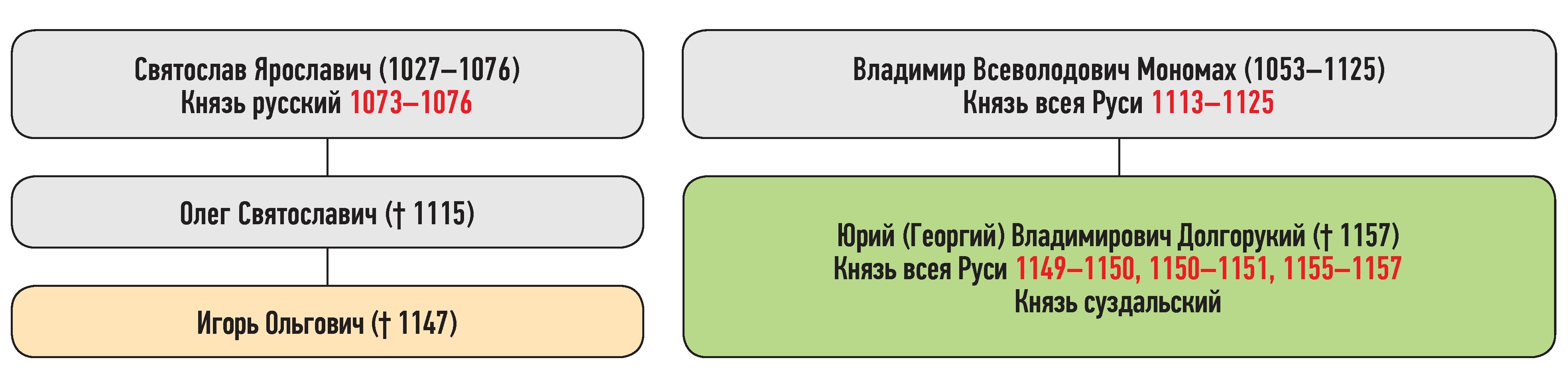 Игорь Ольгович — сын Олега Святославича, Юрий Владимирович — сын Владимира Всеволодовича Мономаха