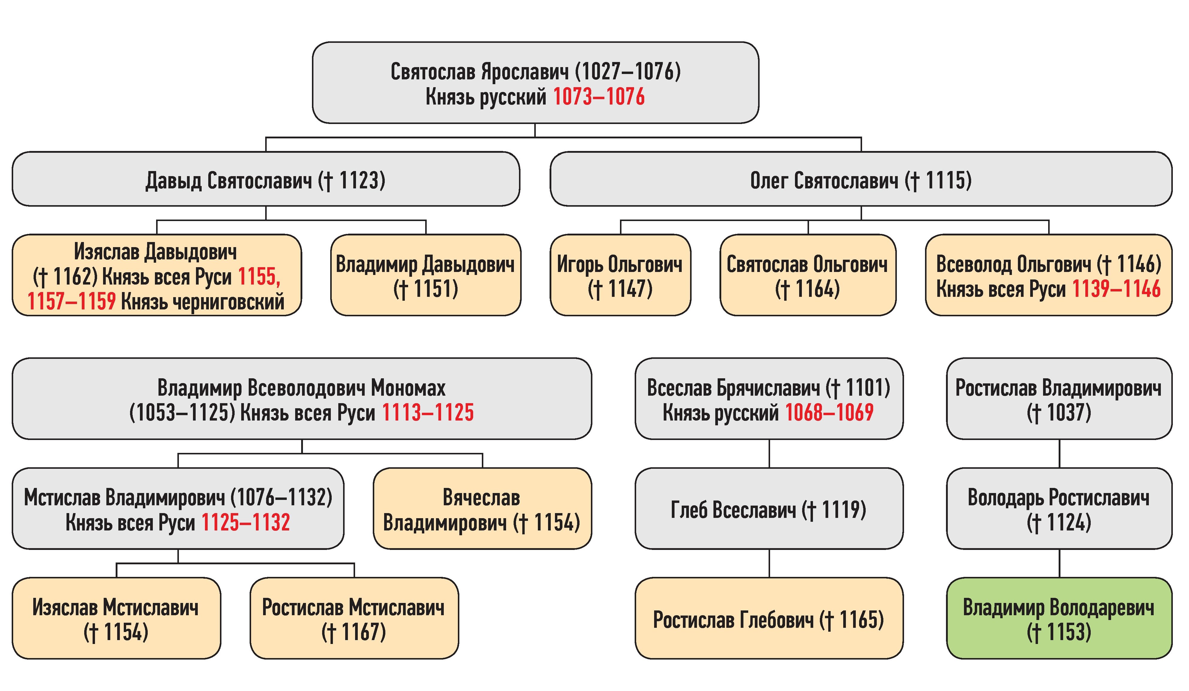 Генеалогическая схема к усобице Ольговичей с Владимиром Володаревичем в 1144 г.