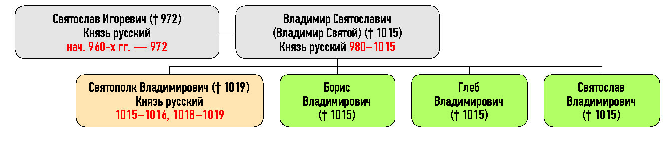 Генеалогическая схема к усобице Святополка и Бориса, Глеба, Святослава Владимировичей в 1015 г.