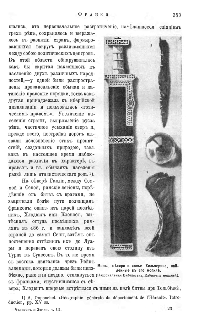 Оружие франков, найденное в Лондиньере, в долтне реки Ольны.