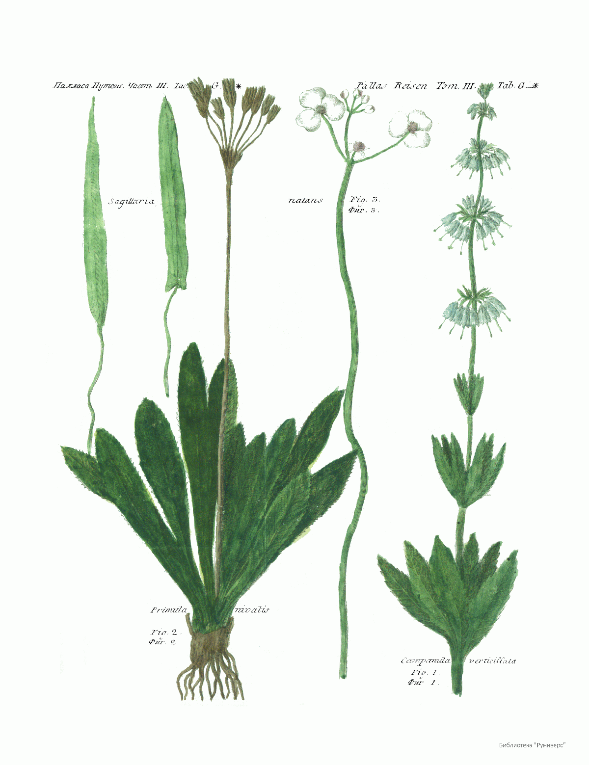 Том III. Таб.G*. Frimuta nivalis. Campanula verticillata.