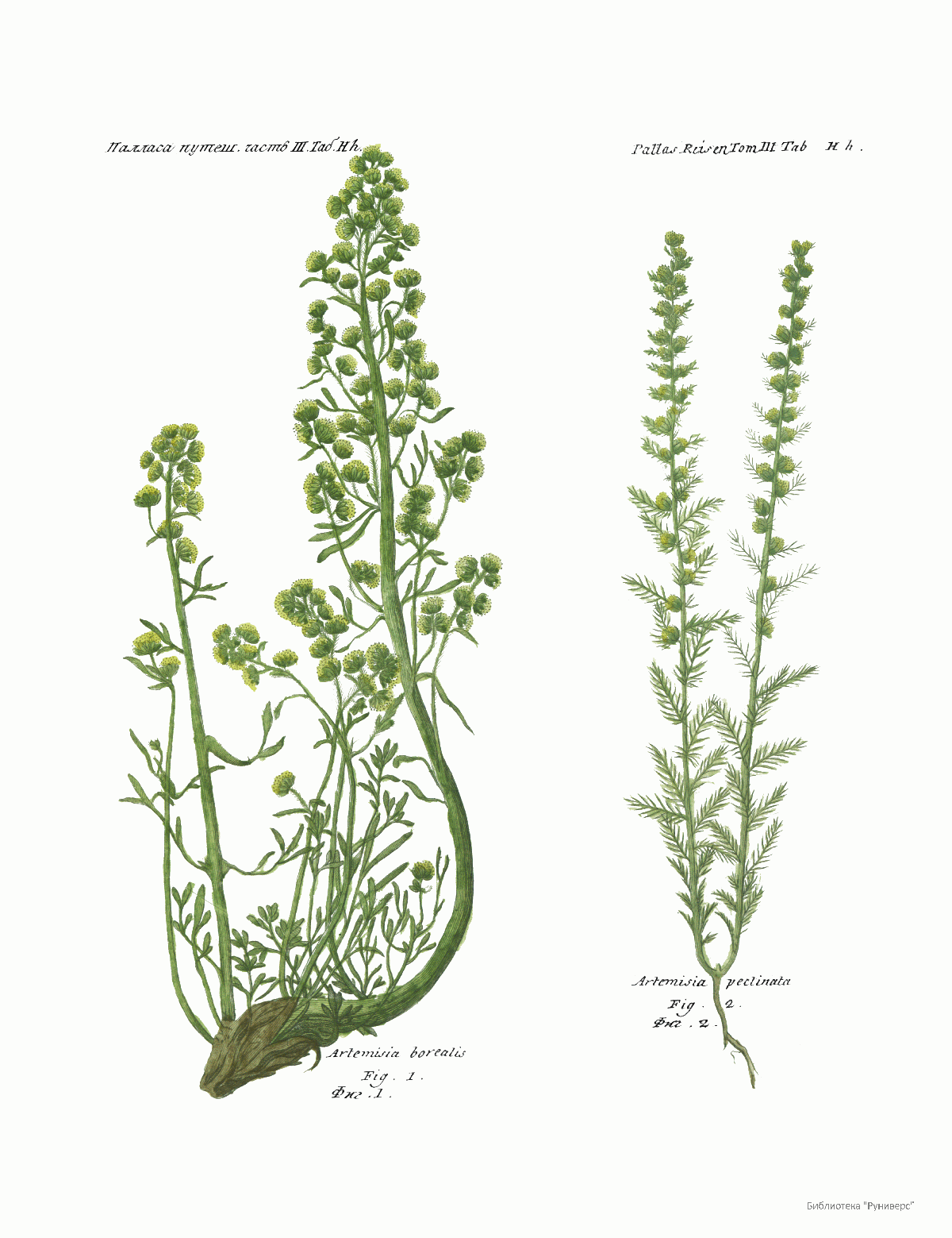 Том III. Таб.Hh. Artemisia borealis. Artemisia pectinata.