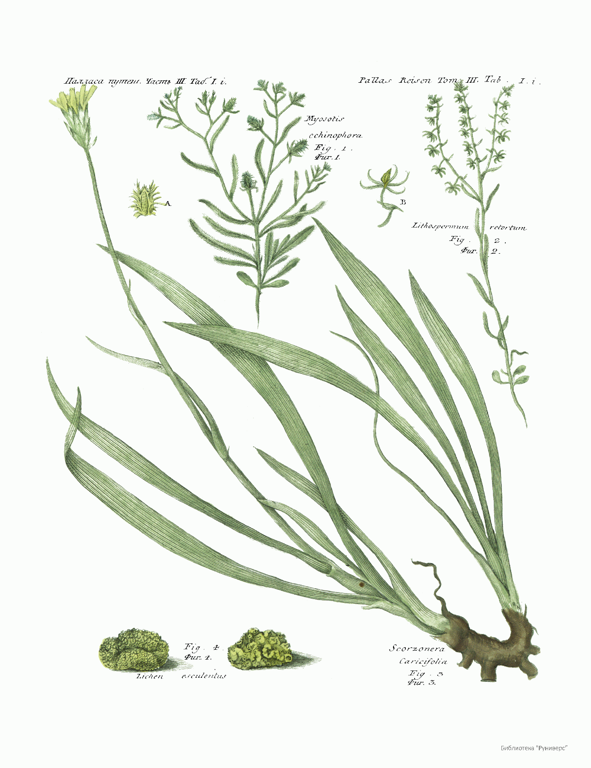 Том III. Таб.Ii. Myosotis echinophora. Lithospermum retortum.