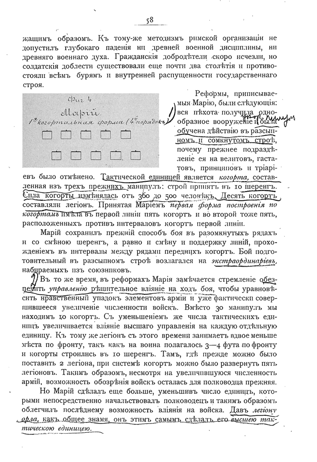 Фиг.4. Первая когортальная форма построения легиона (реформа Мария).
