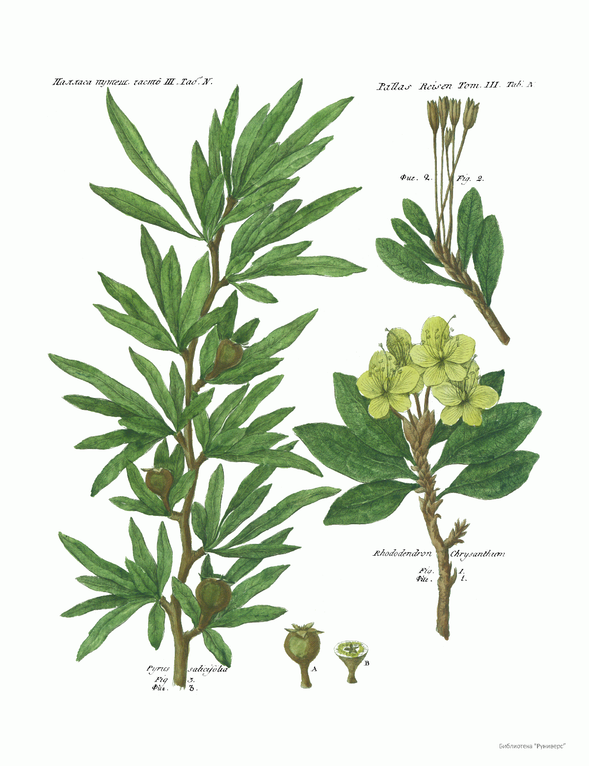 Том III. Таб.N. Pyrus saticifolia. Rhododendron Chrysanthum.