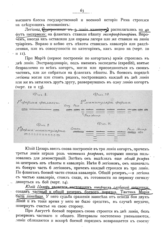 Боевой порядок римской армии. Фиг.8. Первая форма фаланги. Фиг.9. Первая манипулярная форма. Фиг.10 и 11. Вторая манипулярная форма.