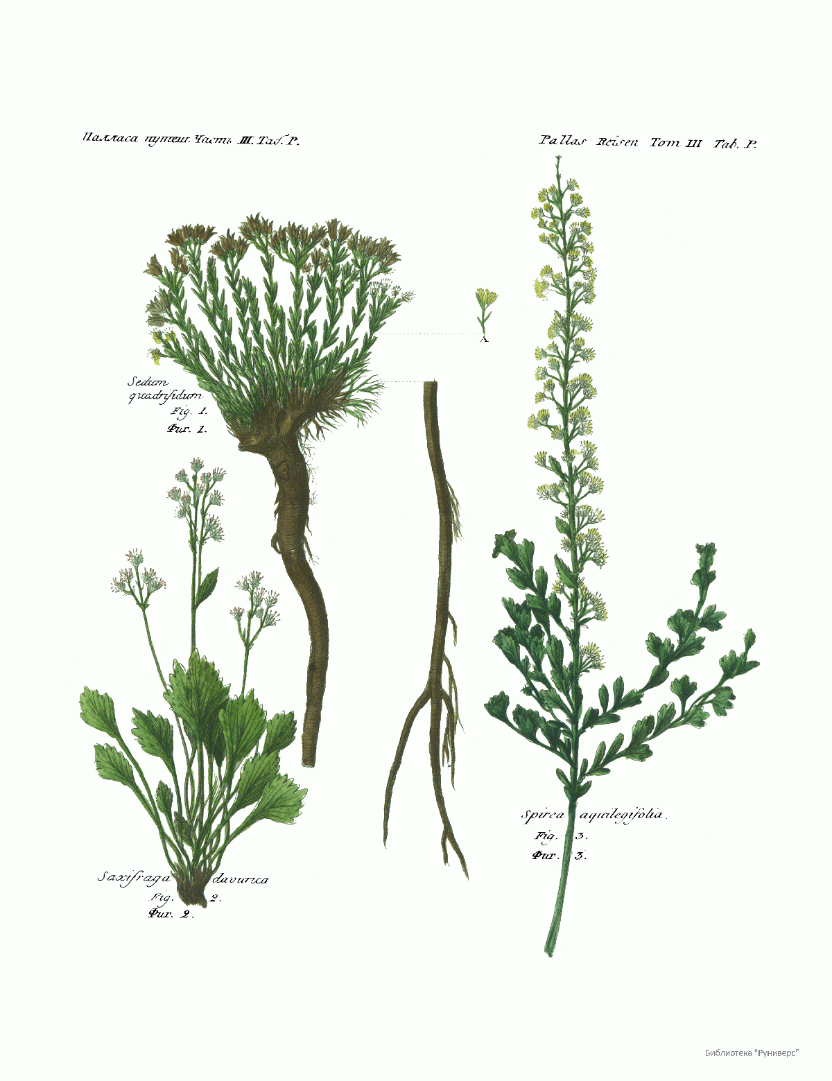 Том III. Таб.P. Sedum quadrifidum. Spirea aquilegifolia.