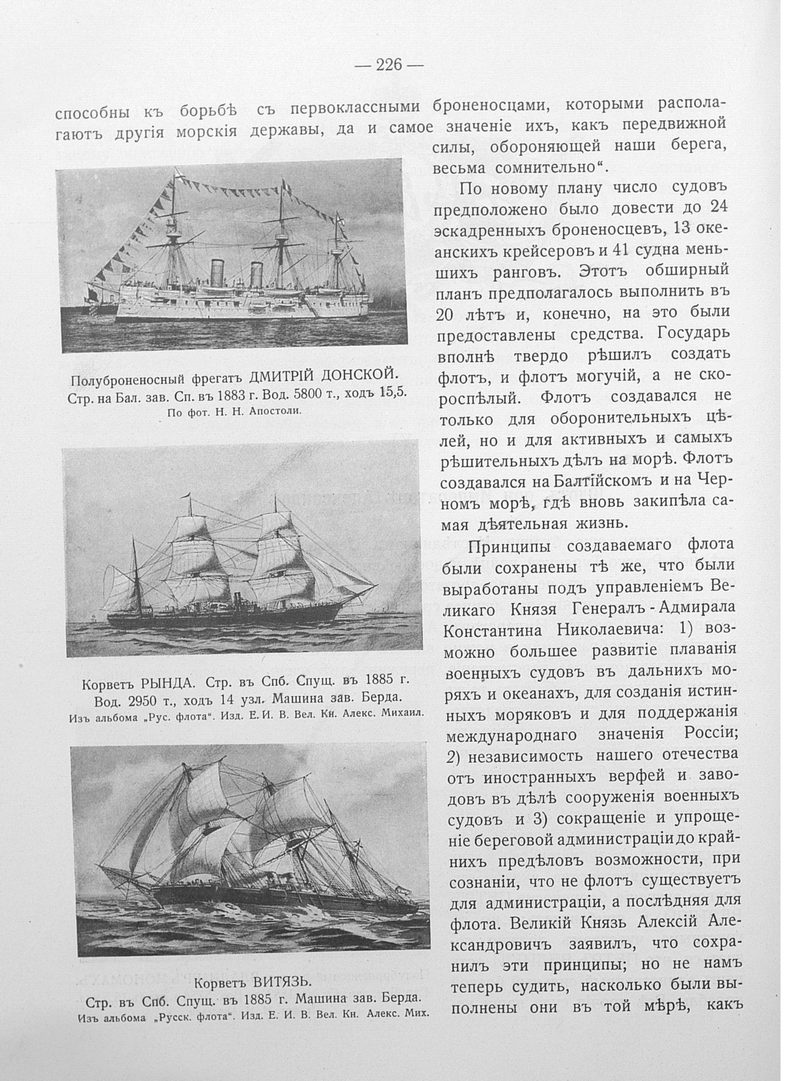 Данное издание является первым прижизненным издание автора, который полностью описывает историю развития Российского флота и кораблестроения, в сочетании с кратким изложением истории флота вообще.