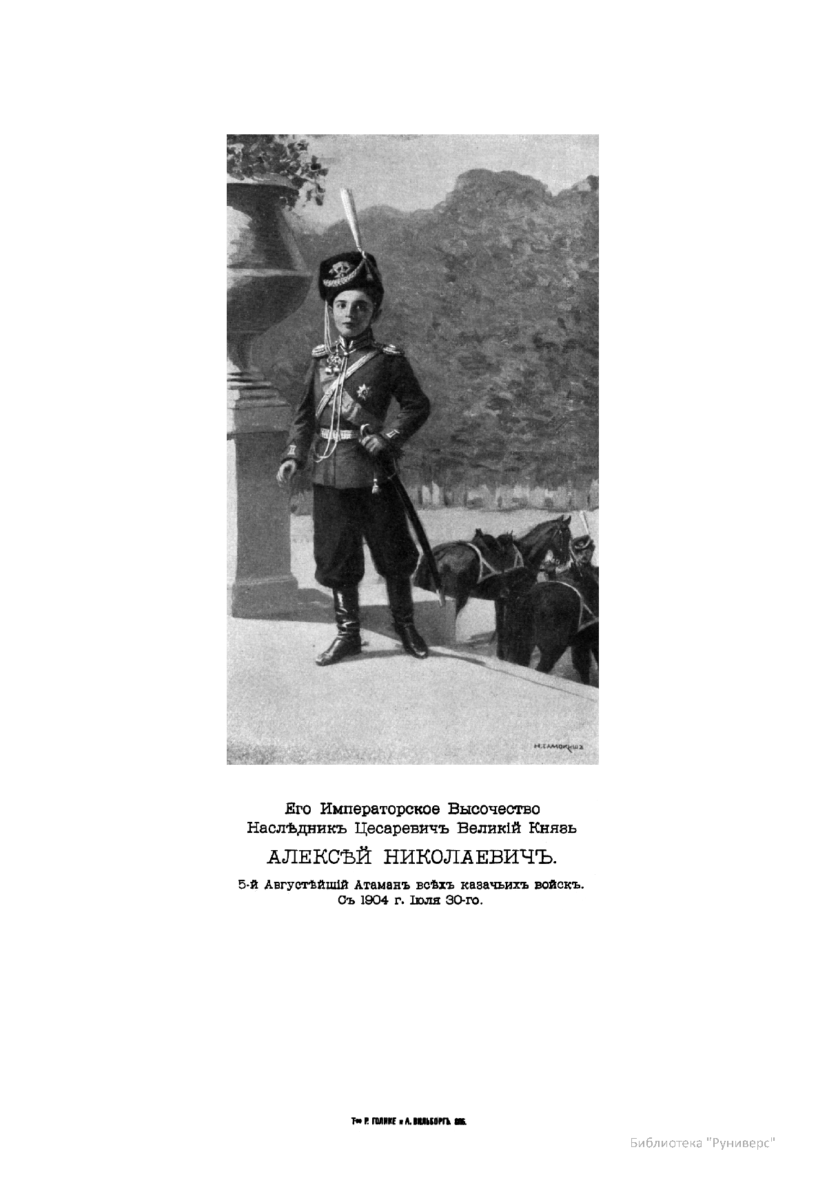 Его Императорское Высочество Наследник Цесаревич Великий Князь Алексей Николаевич. 5-й Августейший Атаман всех казачьих войск. С 1904 г. Июля 30-го.