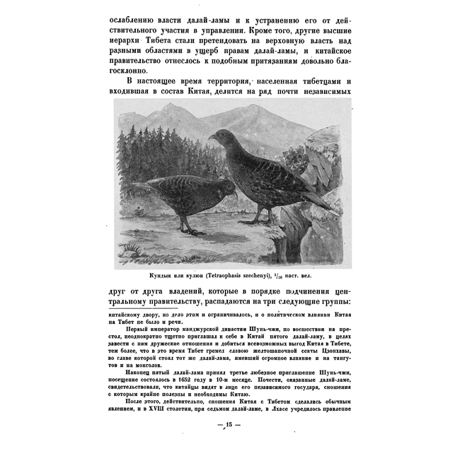Кундык или кулюн (Tetraophasis szechenyi), 1/16 настоящей величины.
