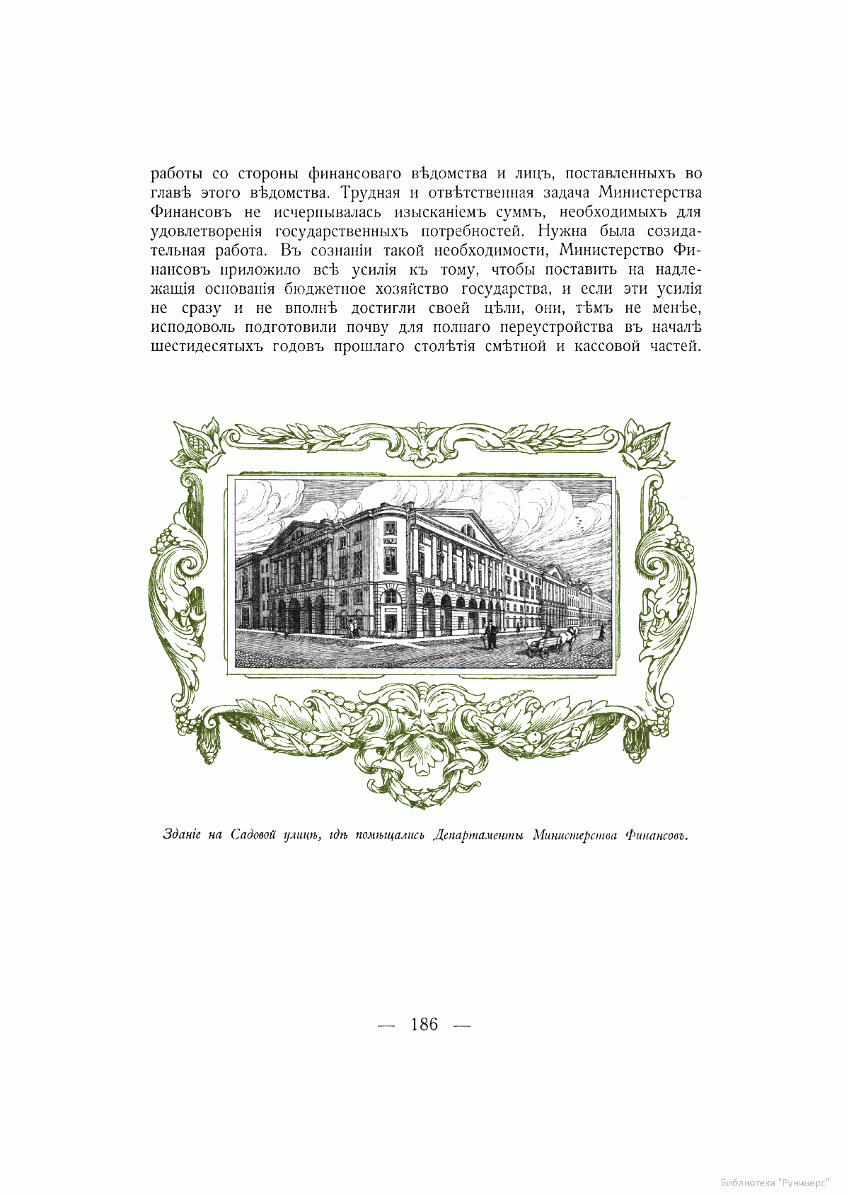 Здание на Садовой улице, где в царствование Императора Александра I помещались Департаменты Министерства Финансов.