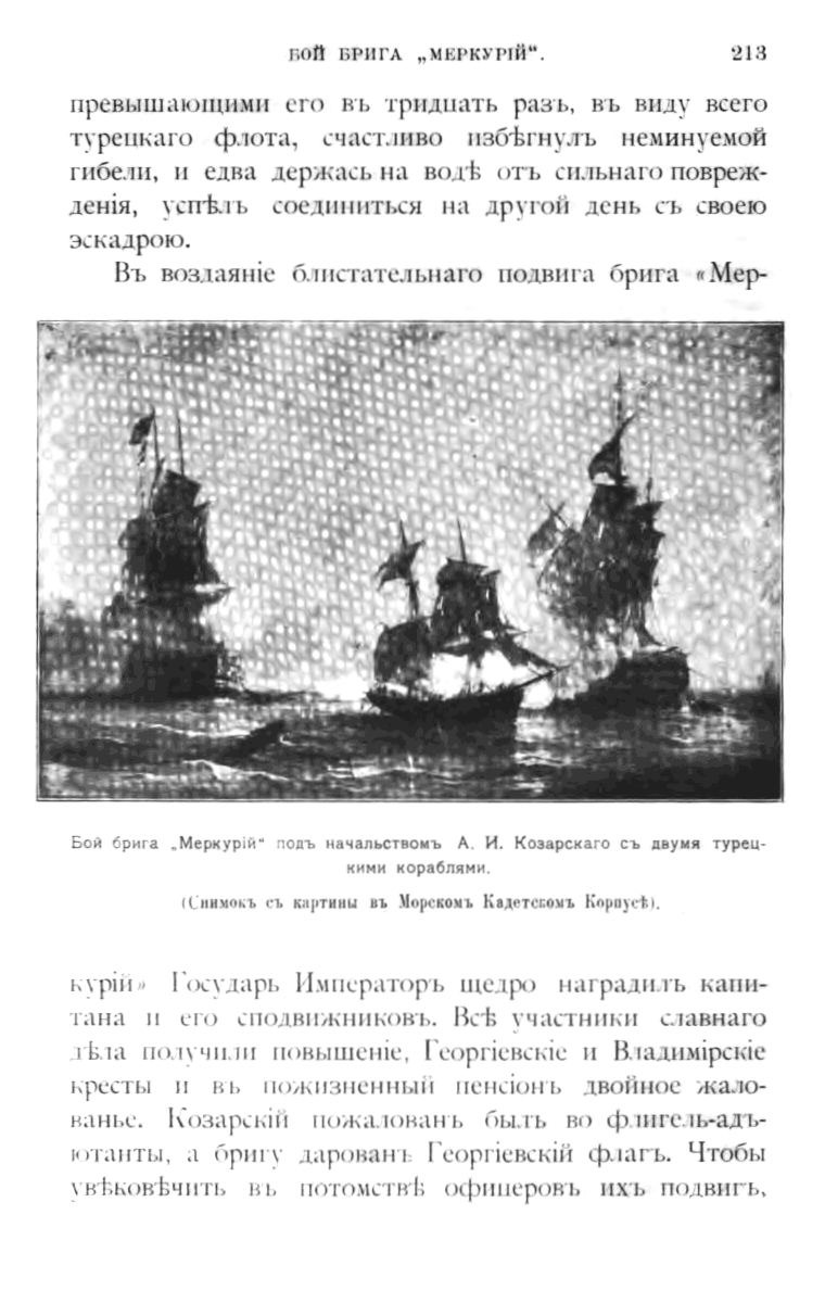 Бой брига "Меркурий" под начальством А.И.Козарского с двумя турецкими кораблями.