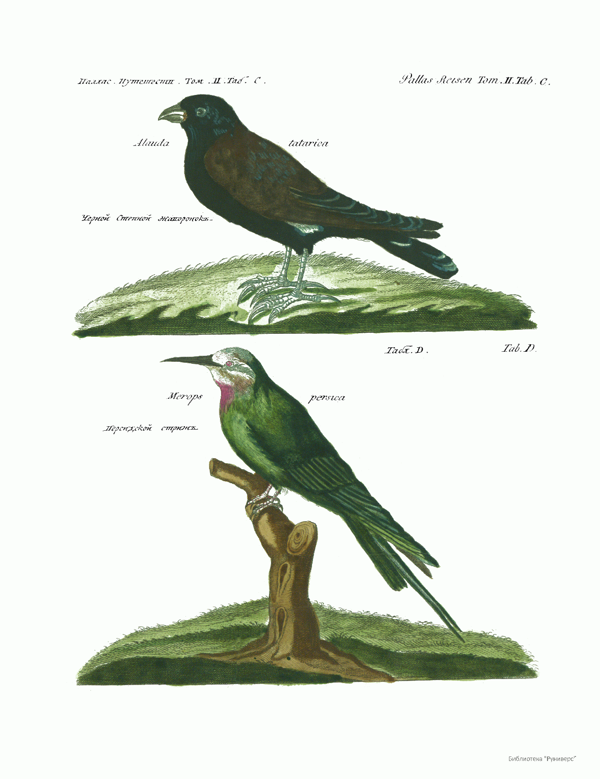 Том II. Таб.С. Черный степной жаворонок. Таб.D. Персидский стриж.