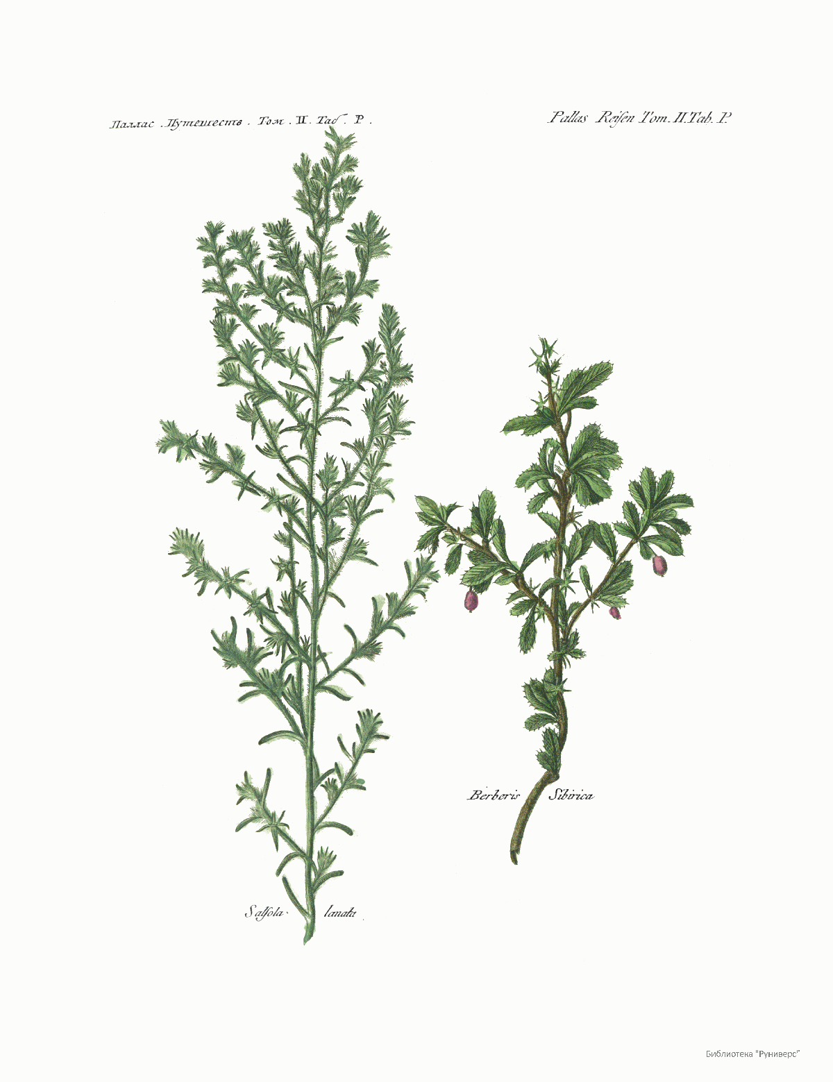 Том II. Таб.P. Salfota lanata. Berberis Sibirica.