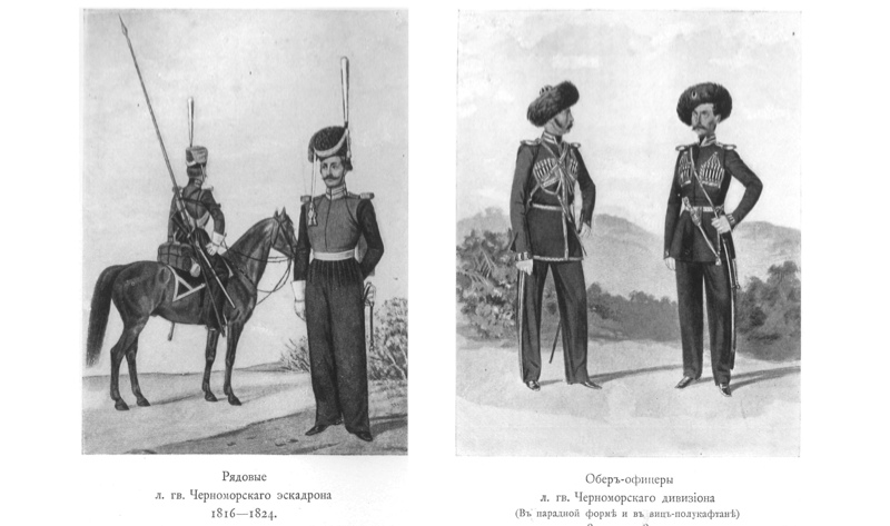 Рядовые л. гв. Черноморского эскадрона 1816-1824, Обер-офицеры л. гв. Черноморского дивизиона (В парадной форме и в вице-полукафтане)