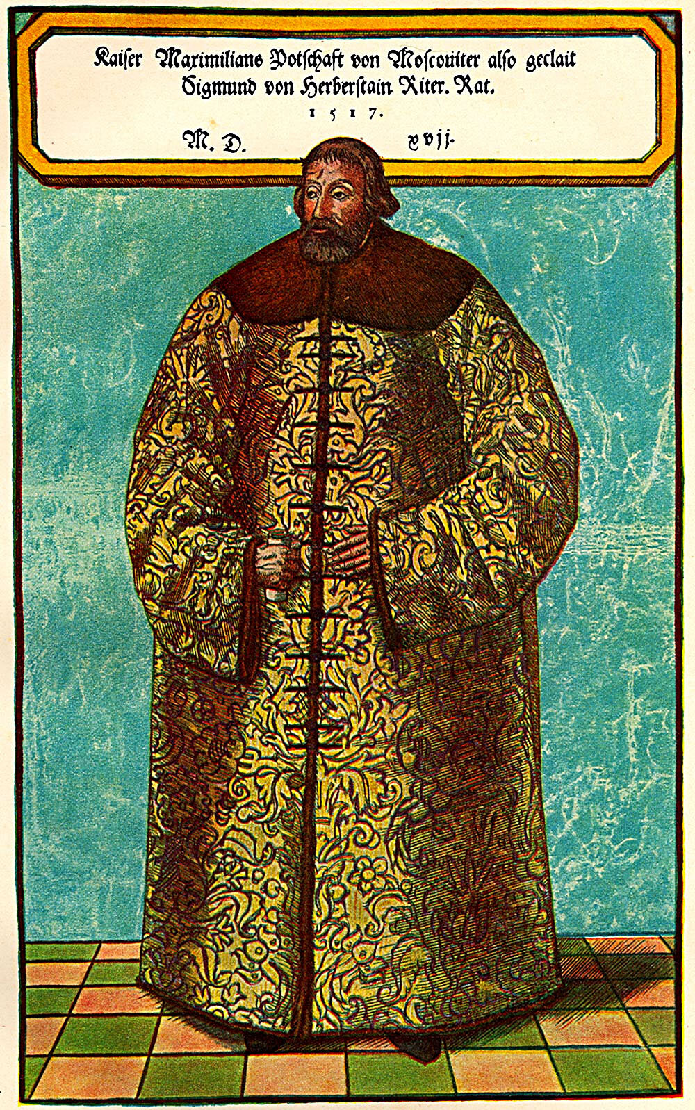 Сигизмунд Герберштейн в шубе, пожалованной ему царем Василием III в 1517 г.