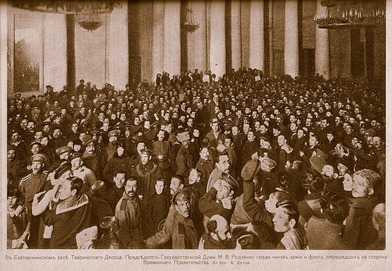 Председатель Государственной Думы Родзянко среди чинов армии и флота, перешедших на сторону Временного правительства. К.Булла. Журнал "Нива" № 12 за 1917 год