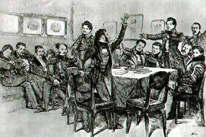 Пушкин среди декабристов в Каменке. Д.Н Кардовский. 1934г.