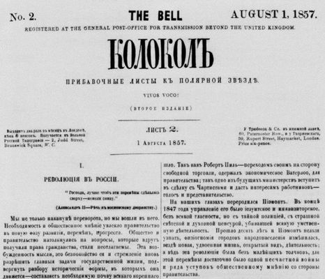 Первая страница газеты Герцена и Огарёва "Колокол" №2. Вольная русская типография. 1857 год