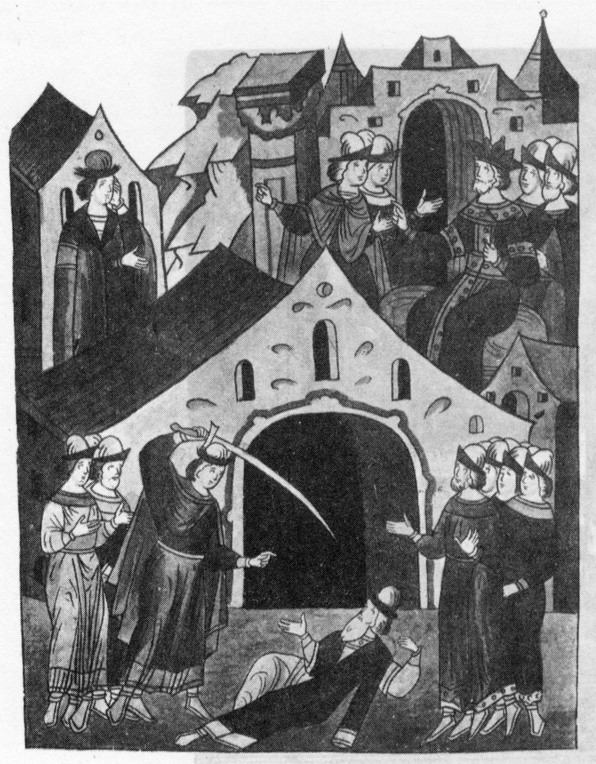 Дмитрий Михайлович убивает Юрия Даниловича Московского в Орде. Из «Царственного летописца»