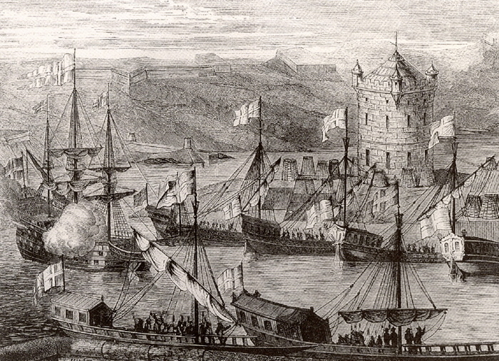 Русский флот под Азовом. Гравюра XVIII века.