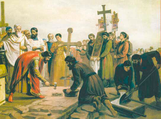 Закладка Десятинной церкви в Киеве в 989 г. В.П.Верещагин. Вторая половина XIX века