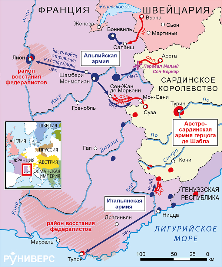 Действия в Альпах, февраль–ноябрь 1793 г.