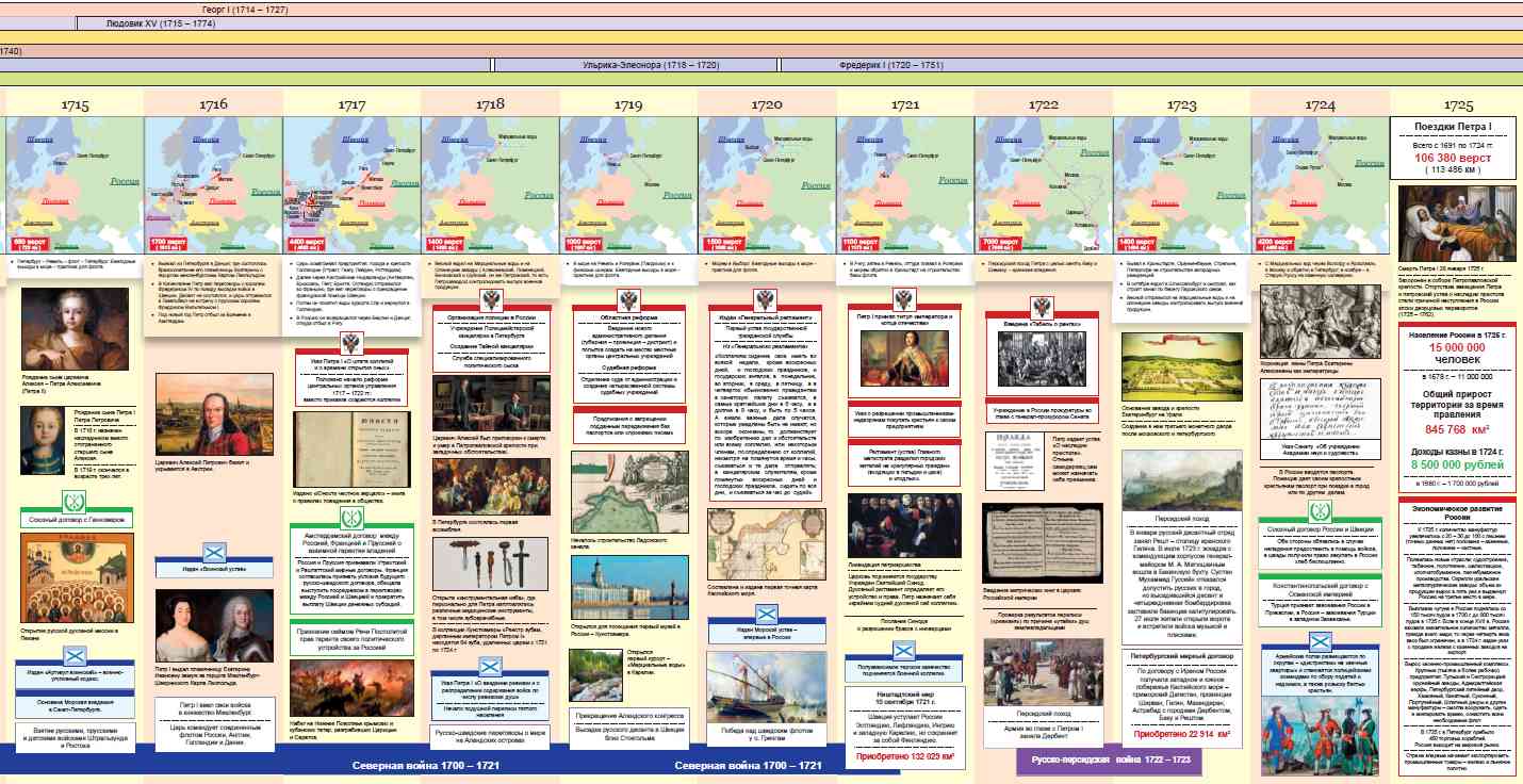 Разворот книги Наглядная хронология. Петр I. Дела и дороги