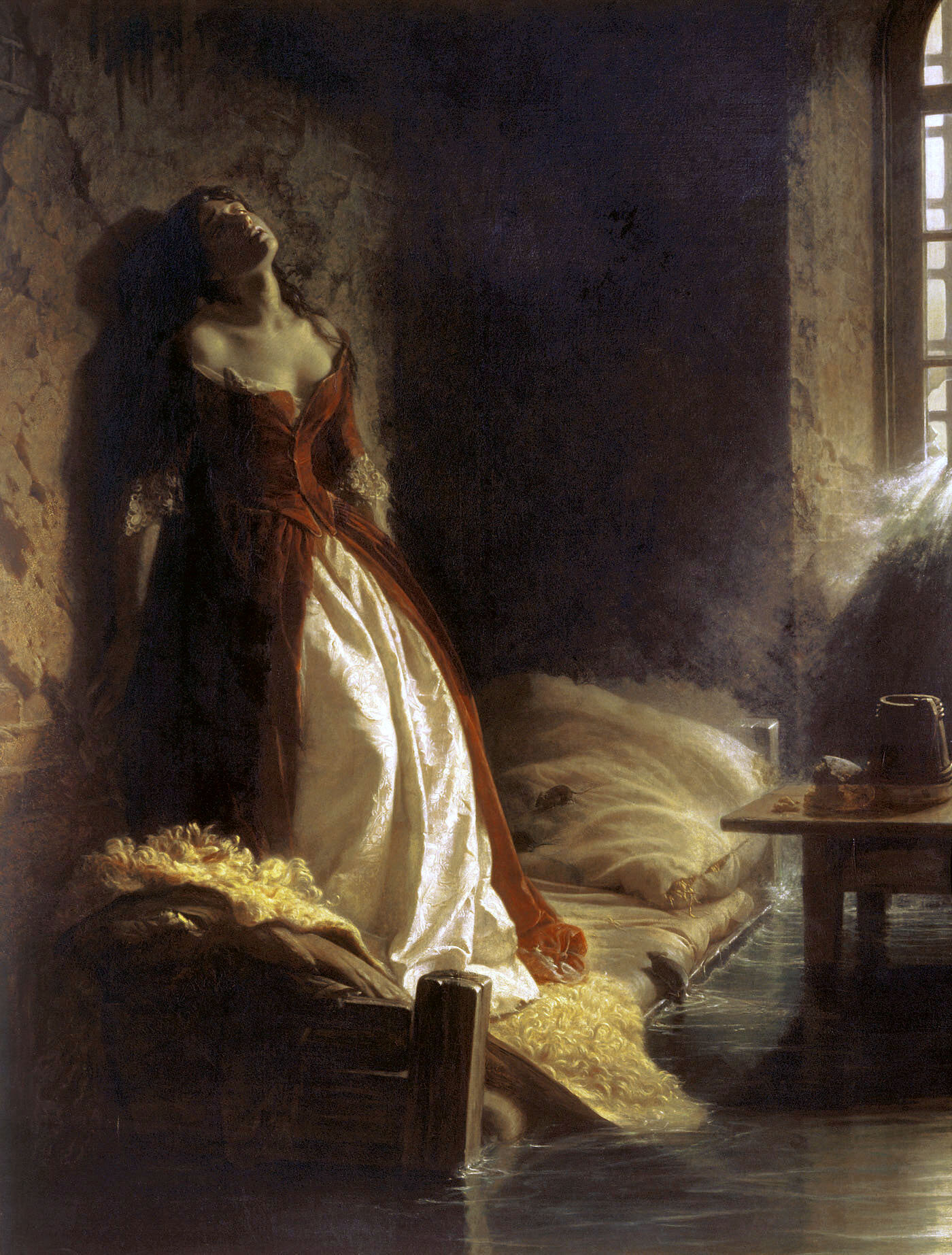 По приезде шлюпки, на которой была Тараканова, к кораблю, на которой должно было ей взойти, спущены были для нее великолепные кресла, на которых она и была поднята на корабль… Но едва взошла она на корабль, как наложили на нее железы. Тщетно упрашивала она Орлова сжалиться над нею, называя его еще все именем супруга. Тщетно бросалась ока к ногам его, орошая их слезами. Варвар даже не удостоил ее ответа. Ее спустили в трюм корабля, и на утро корабль отправился в Россию.