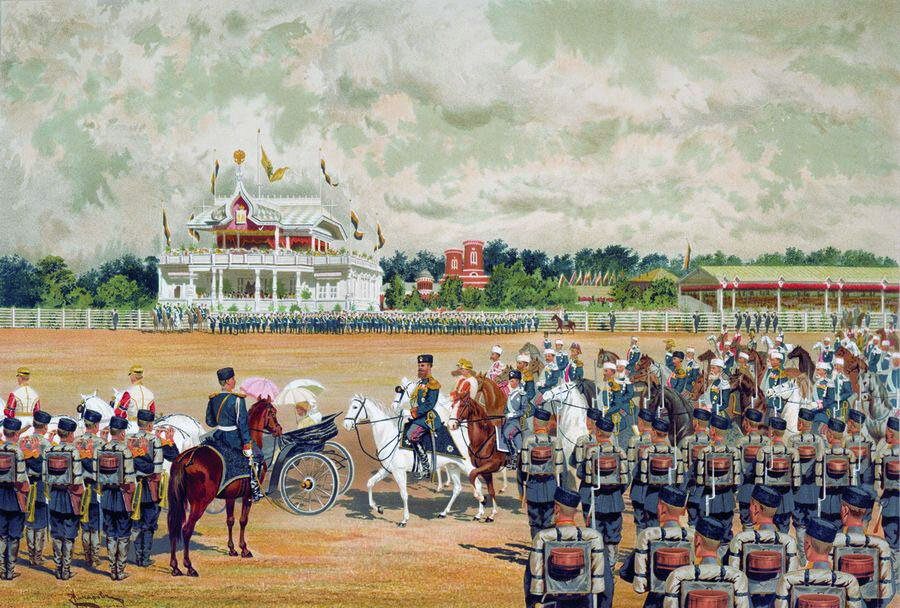 Лист из альбома: Описание священного коронования Государя Императора Александра III-го и Государыни Императрицы Марии Феодоровны. —СПб.: Картографическое заведение А. Ильина. 1883
