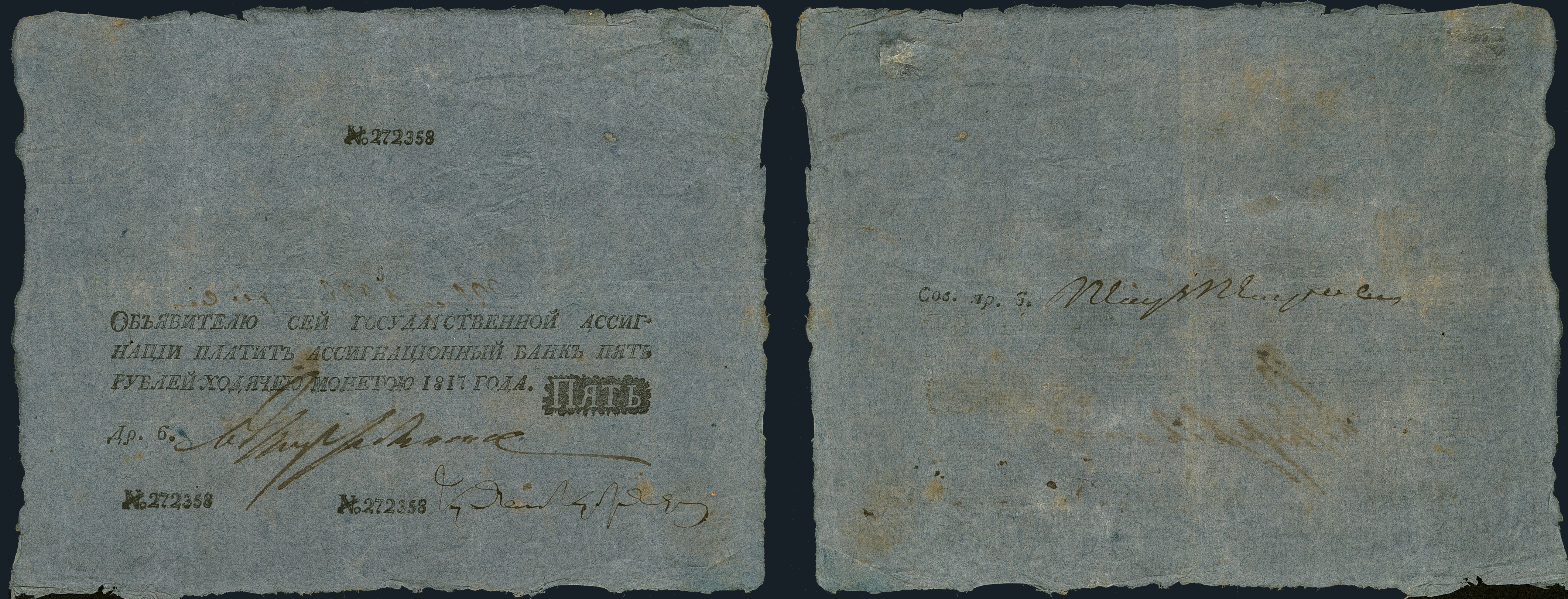 Ассигнат на 5 рублей, 1817 г.