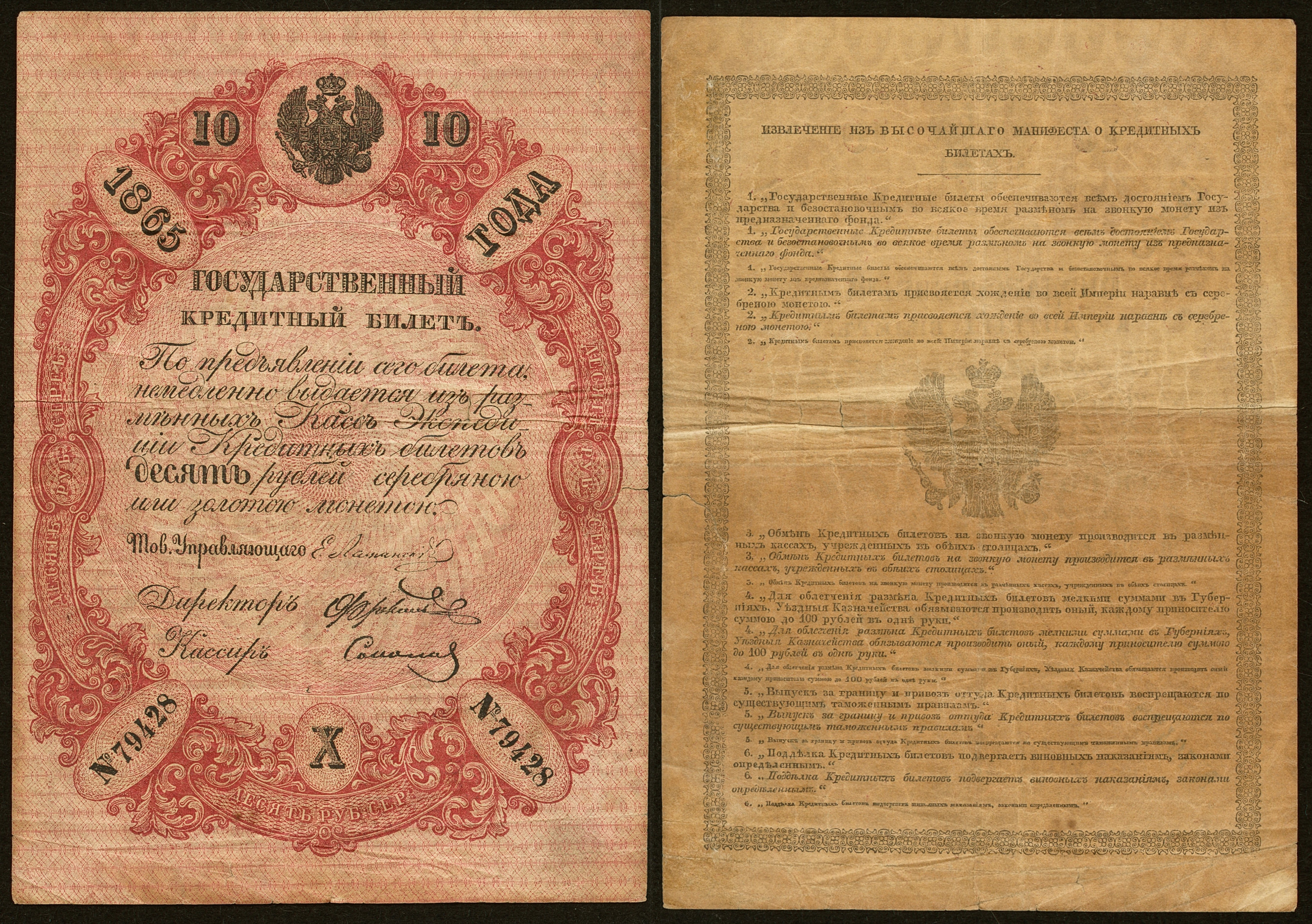 Краткосрочное обязательство Государственного Казначейства Российского правительства адмирала А.В. Колчака 50 руб. Срок 1 марта 1920 г. Аверс