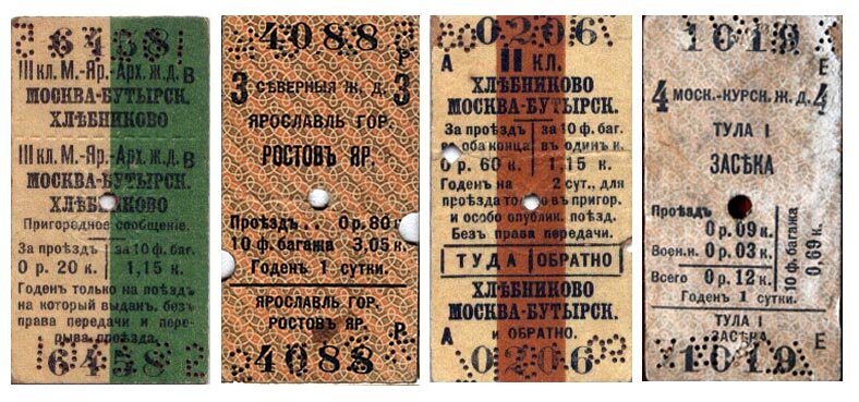 Образцы железнодорожных билетов начала XX века