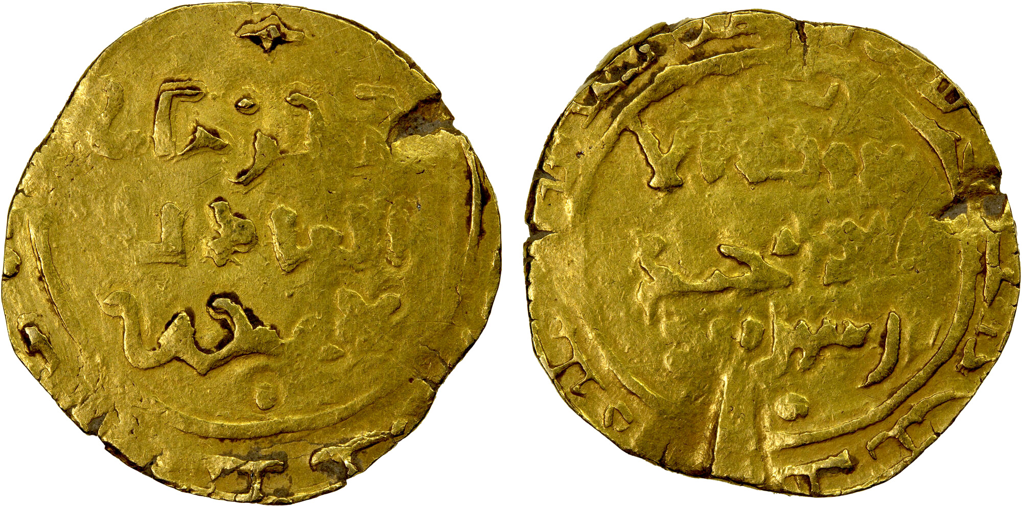 Второй тип динаров Чингисхана, т.н. бухарский. Всего 5 монет такого типа были найдены в 1970 в Иране. 623 ГХ (1226 н.э), 5,46 гр, продан за $3250.