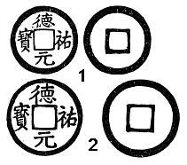 Крошечное изображение двух монет Гун-цзуна - Dé yòu yuán bǎo (德祐元寶), теоретически отлитых в его правление.