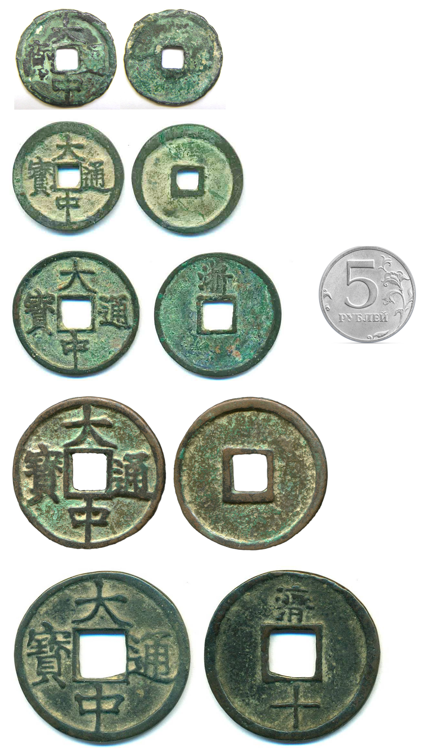 Естественно, самый главный повстанец, Чжу Юаньчжан, наш будущий первый император династии Мин, не мог не выпустить свою монету - dà zhōng tōngbǎo (大中通寶)