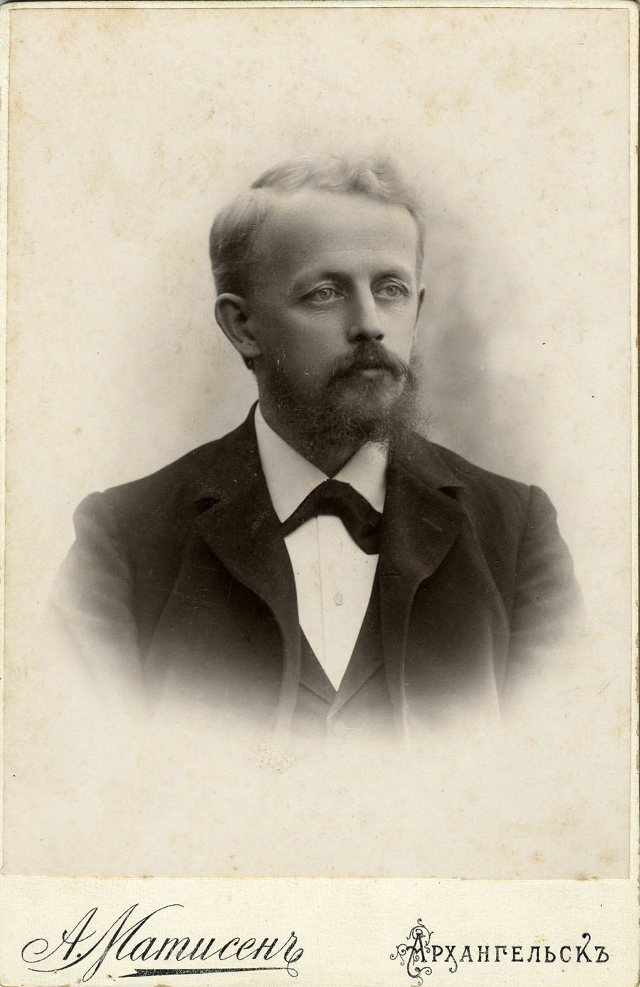 Портрет мужчины. На обороте надпись: “Дорогим родителям на добрую память от любящего их ( подпись неразборчивая). 29 мая 1905 года. Архангельск.