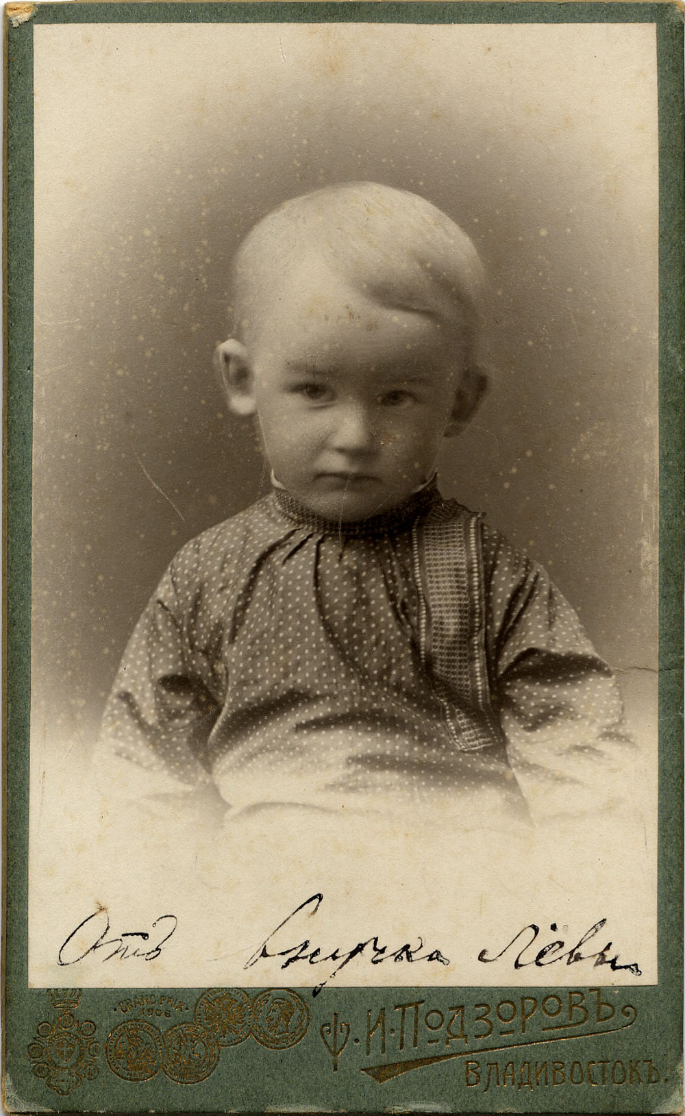 Фотограф Ф.И. Подзоров, Владивосток. Портрет маленького мальчика. 10 августа 1912 г.