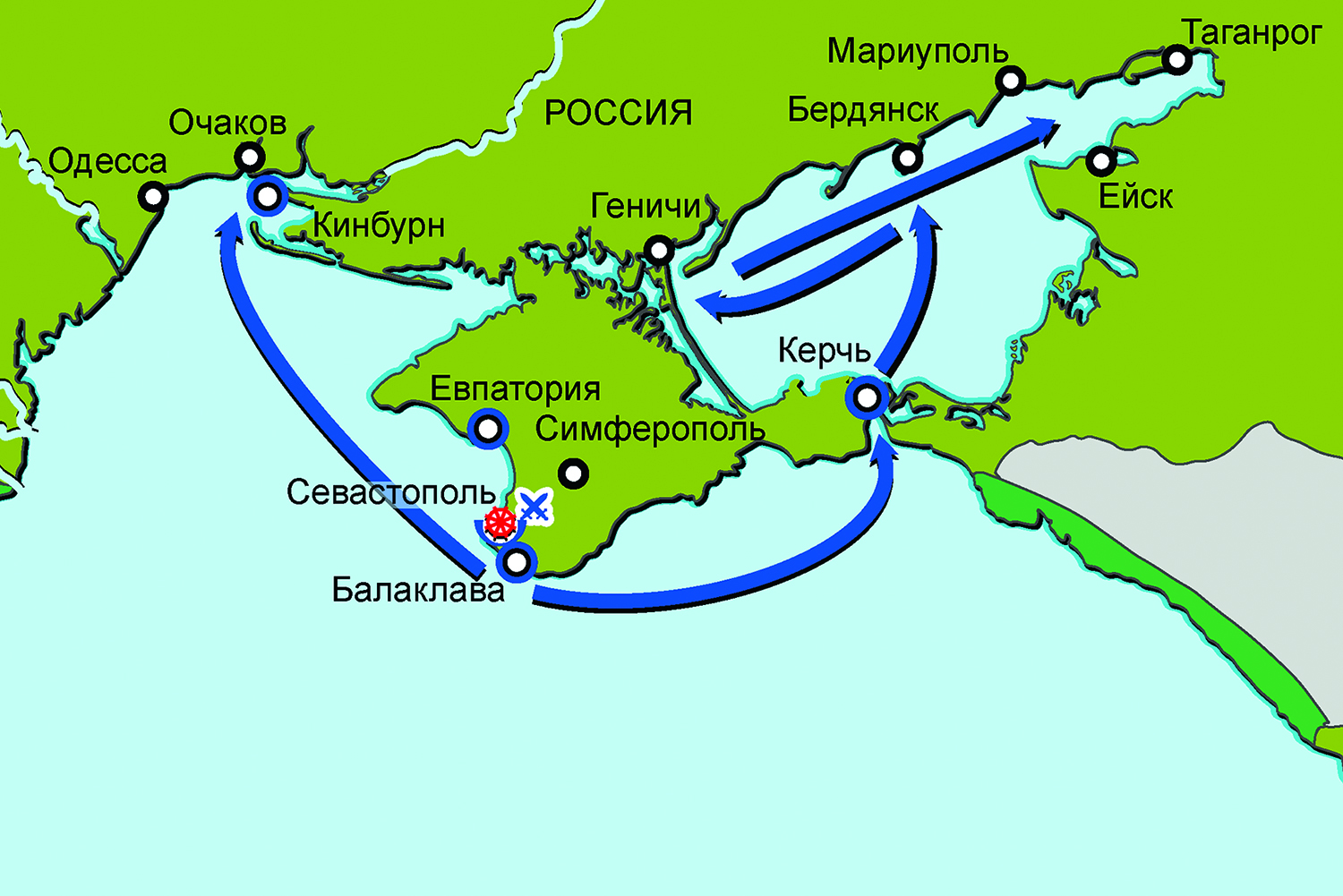 Карта кампании 1855 г. в Крыму и на Черном море (Крымская война 1853–1856 гг.)