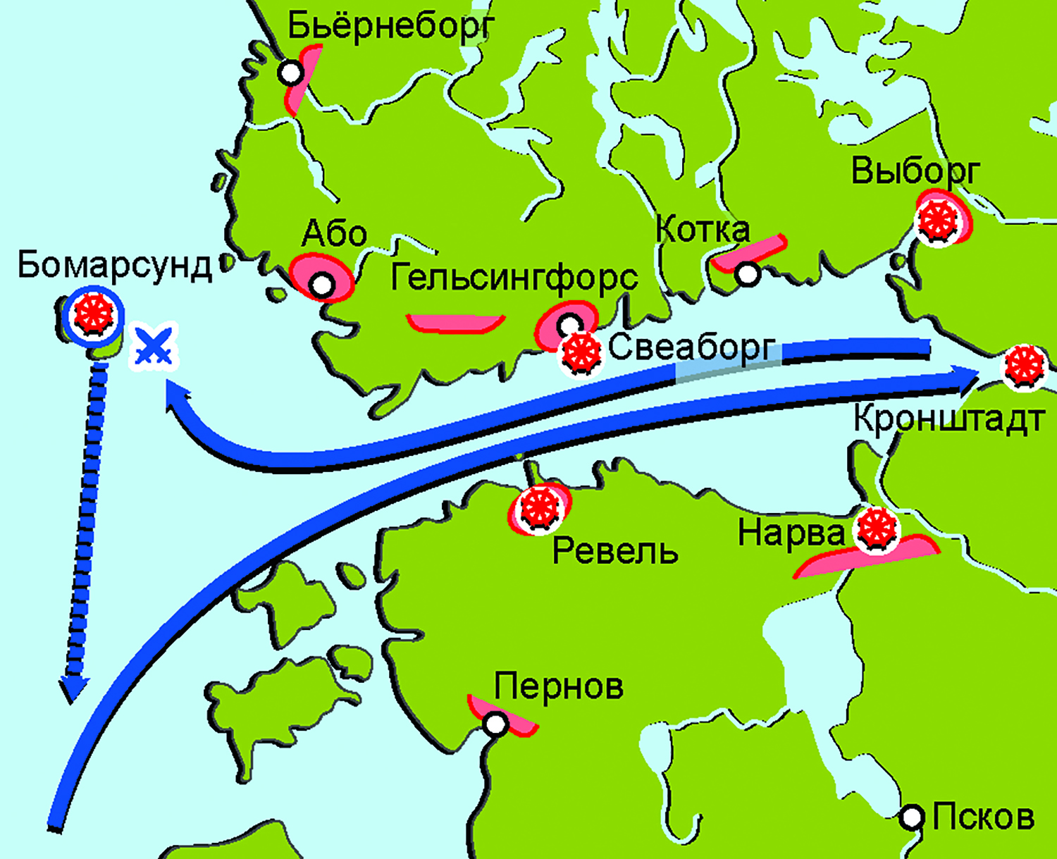 Карта кампании 1854 г. на Балтике (Крымская война 1853–1856 гг.)