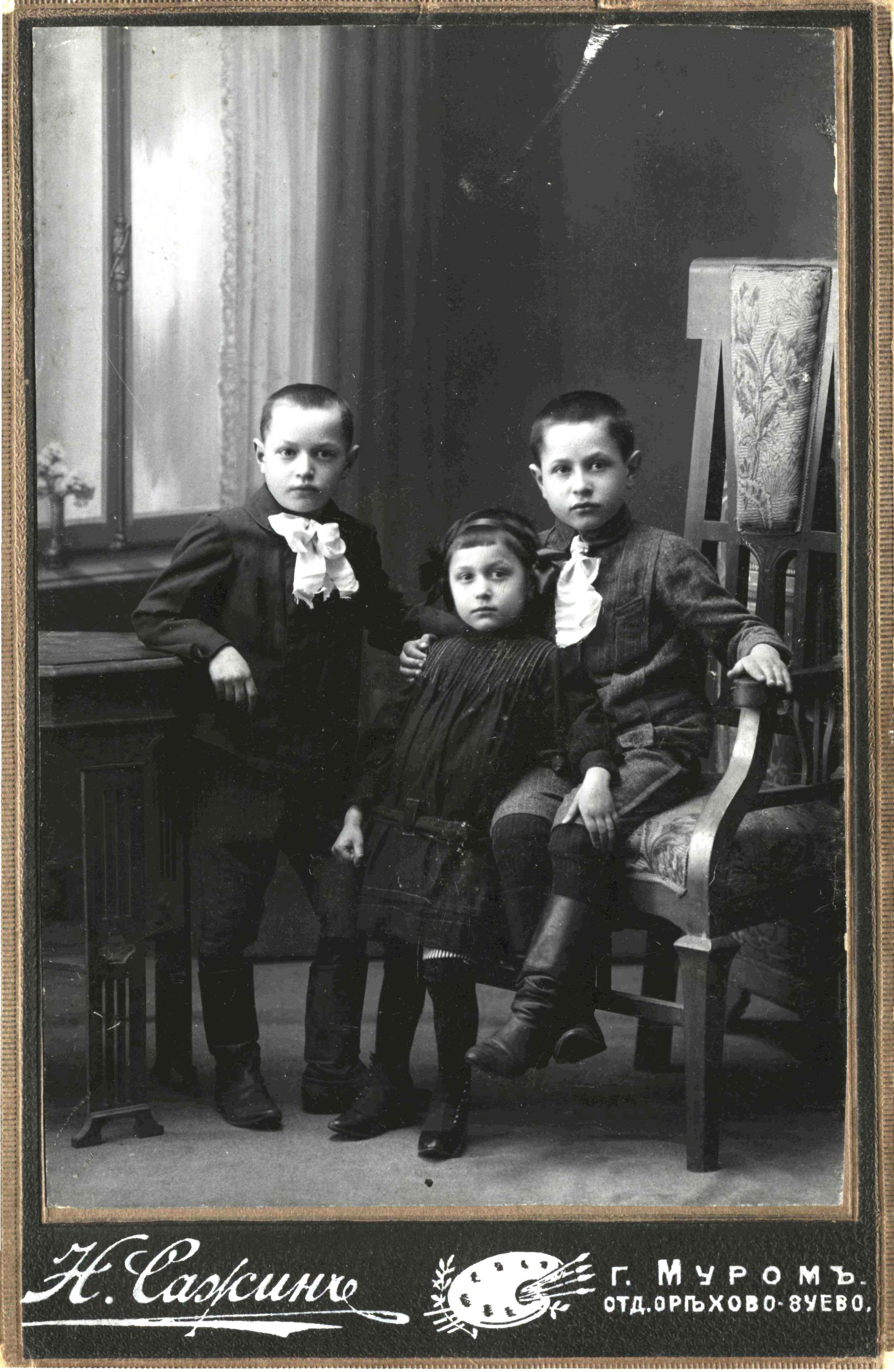 Фото Н.Н. Сажина, Муром. Портрет детей из семьи Свердловых. 1914. На паспарту: 10,7х16,7 Муромский историко-художественный музей
