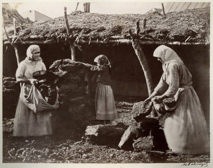 Казачки сносят кизяки в катух (сарай). Цимлянская станица.