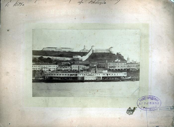 Вид на Похвалинский съезд, Нижний базар и рейд реки Волги. Нижний Новгород.