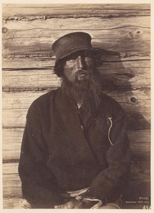 Поволжский крестьянин на фоне избы.